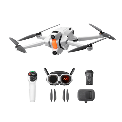 • Standard Bundle includes: 1× A1 Drone, 1× Vision Goggles, 1× Grip Motion Controller, 1× Flight Battery, 1× A1 Drone Carry Case, 4× Spare Propellers
